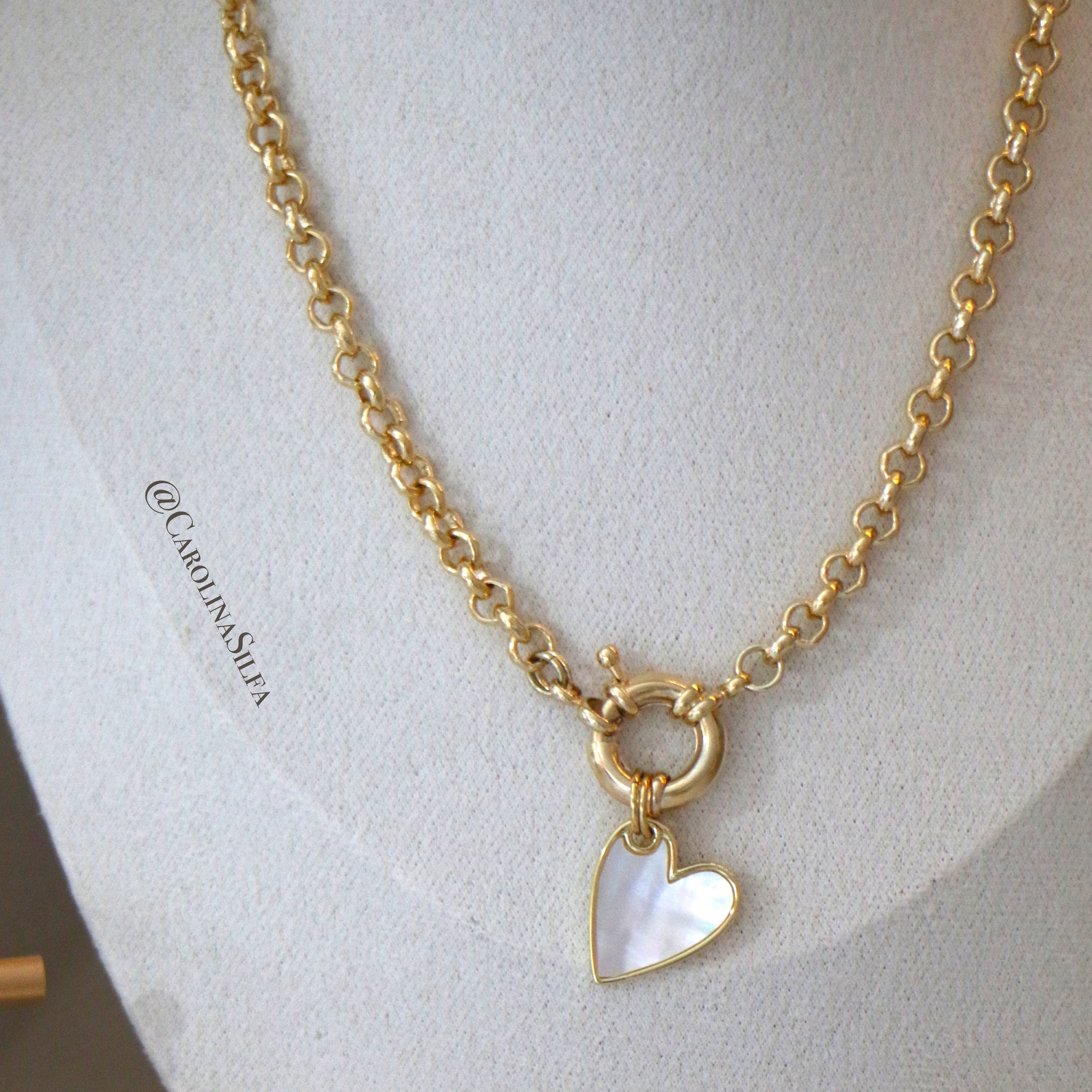 Collar en cadena laminados en oro con detalle de medalla en Nácar. Incluye sus aretes.